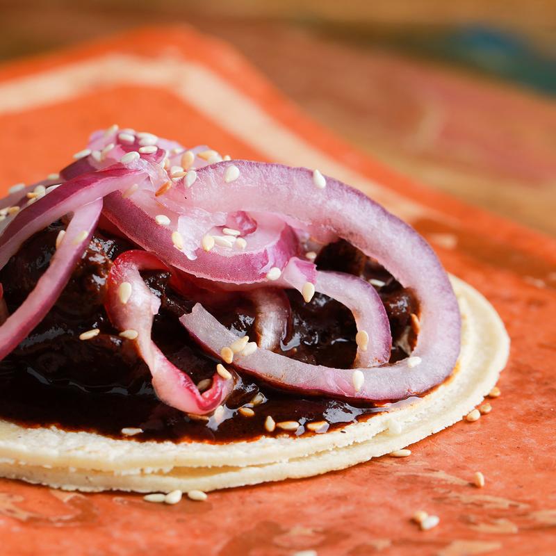 In love! They have a salsa bar! They are called gourmet tacos and I had a few of them! Oaxaca black mole- this is why I came here and the mole was extremely dark! It was good but there were other tacos that stood out.